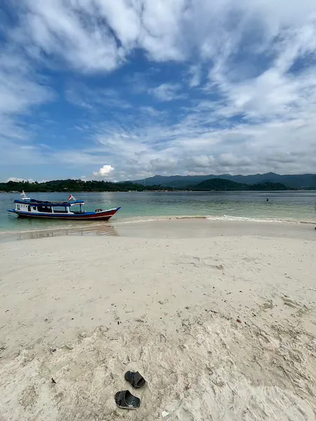 Unfortunately, the water wasn’t very clear—the beach lacked the crystal-clear quality I had hoped for. Since I didn’t have much time before my flight, I figured I’d just dip my feet in the water and relax. But then, I found out that boats were available to take visitors to Tangkil Island (Pulau Tangkil), just a short ride away.