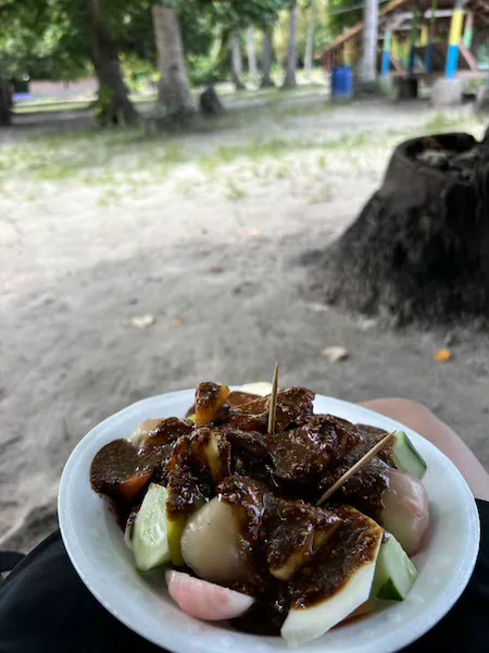 While exploring the island, I came across a food stall selling rojak, a traditional fruit and vegetable salad. I had been wanting to try it but hadn’t found the chance before. The vendor asked if I wanted chili in it, and I confidently said yes.